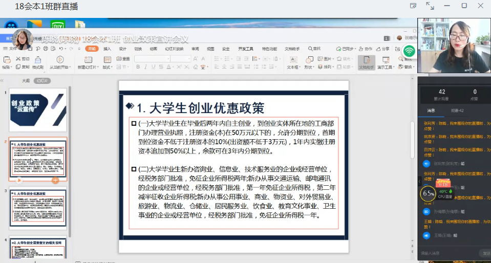 365VIP英国上市官网为深入贯彻落实河南省教育厅《关于在全省大中专公司开展毕业生就业创业政策宣传周的通知》(以下简称《通知》)要求,365VIP英国上市官网在员工疫情居家学习的情况下,积极展开创新创业政策宣传会议,2020年5月8日通过钉钉线上直播方式对员工面对面展开宣传和讲解,期待能够对员工创新创业知识的困惑进行解答,对员工创新创业政策进行进一步的了解。