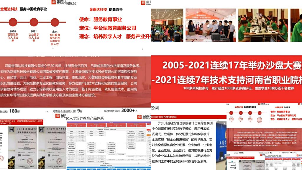 河南金雨达科技有限公司成立于2015年,是新道科技股份有限公司河南省授权代理商,注册资金伍佰万,致力于培养数字人才服务产业升级,也是公司就业实习基地之一。