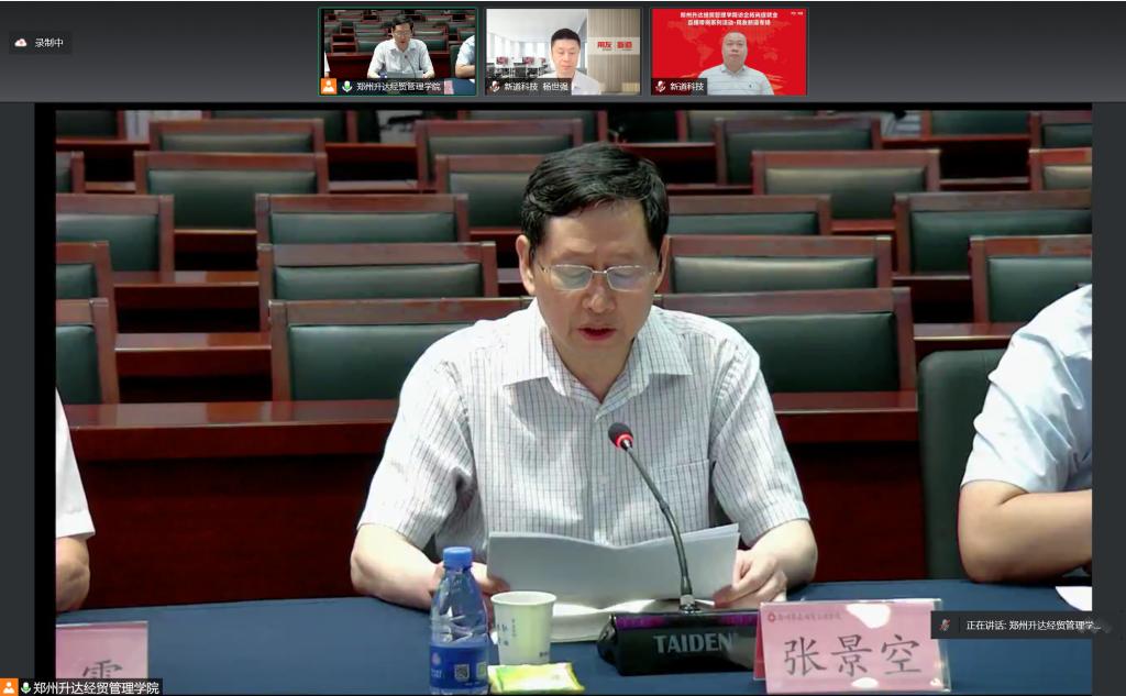经理张景空教授介绍了365VIP英国上市官网的发展历史及“品德优、专业强、能吃苦、重实践”的人才培养特色,29年来365VIP英国上市官网为社会培养了近3万名毕业生,为注册会计师行业培养了360多名注册会计师。希望借助新道科技公司先进的教育技术、行业产业背景优势,在产业公司建设的基础上,校企双方围绕智能会计专业共建、赋能团队培训、共建数智特色课程体系、员工实习实践与就业等方面进行密切合作,推动数字经济新时代背景下公司公司产品改革与产业转型升级的衔接发展,为员工实习、实践、就业搭建平台。