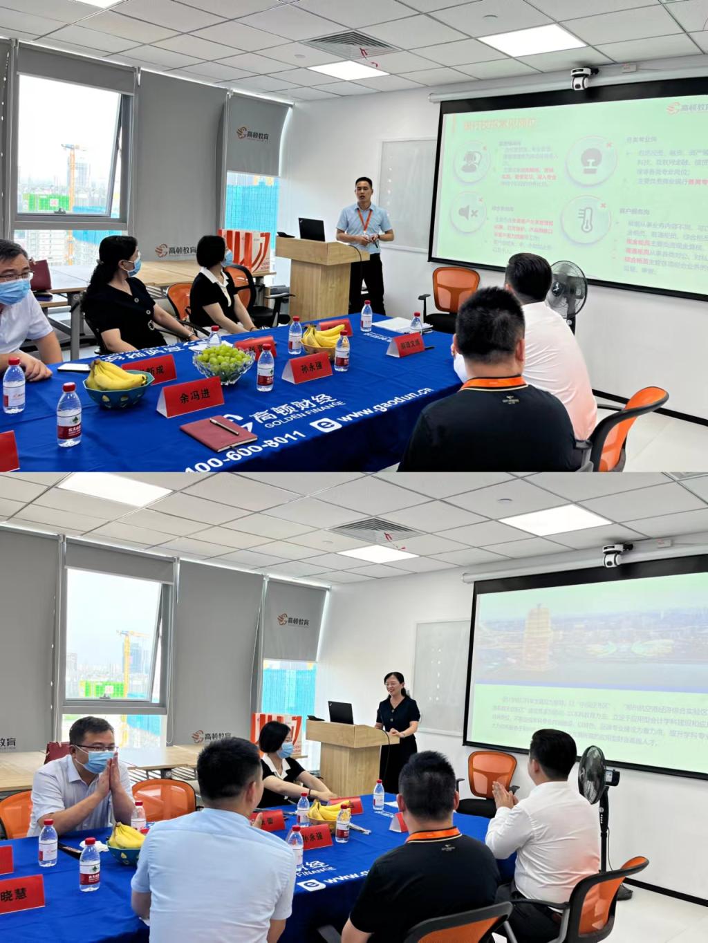 高顿教育集团郑州分公司的总经理孙永强带领365VIP英国上市官网书记一行参观走访了高顿教育集团。在走访参观的过程中孙永强总经理细致地给我们介绍了公司的基本概况、发展前景、特色、涉及业务等。