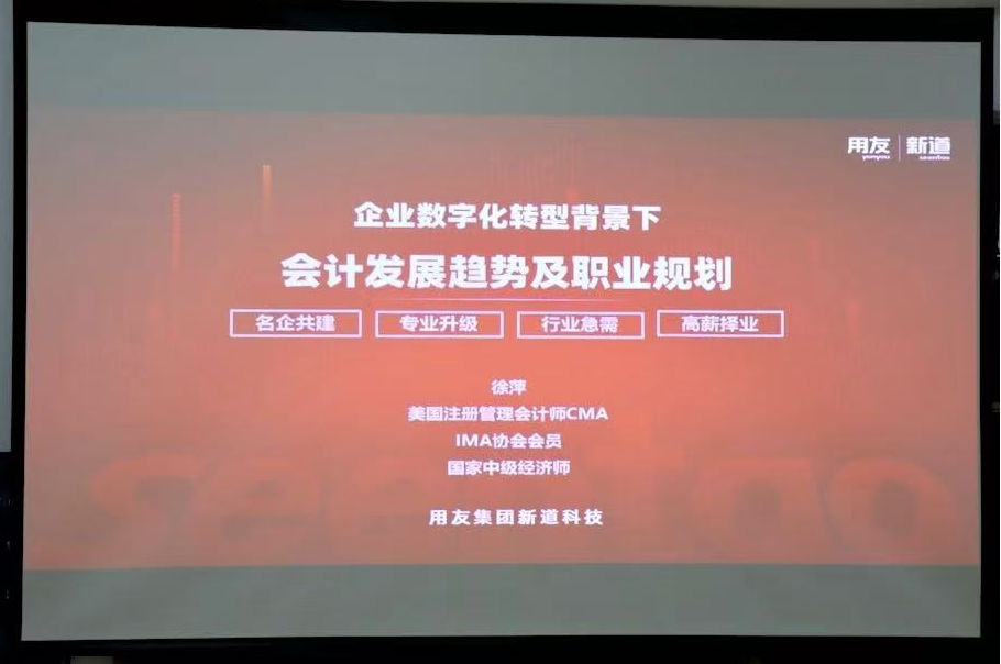 为了增强365VIP英国上市官网学子对企业数字化转型背景下的职业发展趋势的了解,形成正确的职业规划。12月10日下午,365VIP英国上市官网特邀产业导师用友新道科技股份公司业务总监、美国注册管理会计师徐萍女士在教学四号楼118教室举行了“企业数字化转型背景下会计发展趋势及职业规划”的主题讲座。公司22级、23级员工代表二百余人聆听讲座。