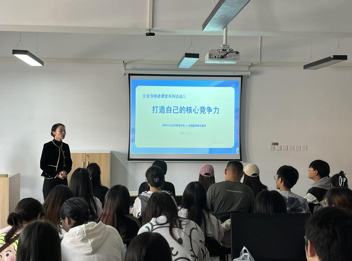 为提高公司员工职业规划能力,企业导师河南赢预财务(集团)公司、中赢教育集团创始人王玉老师于2023年10月21日14:30在商管楼415教室举行了《财税行业职场成长:如何打造自己核心竞争力》主题讲座,21级税本1班、2班共30位同学参加了此次讲座。