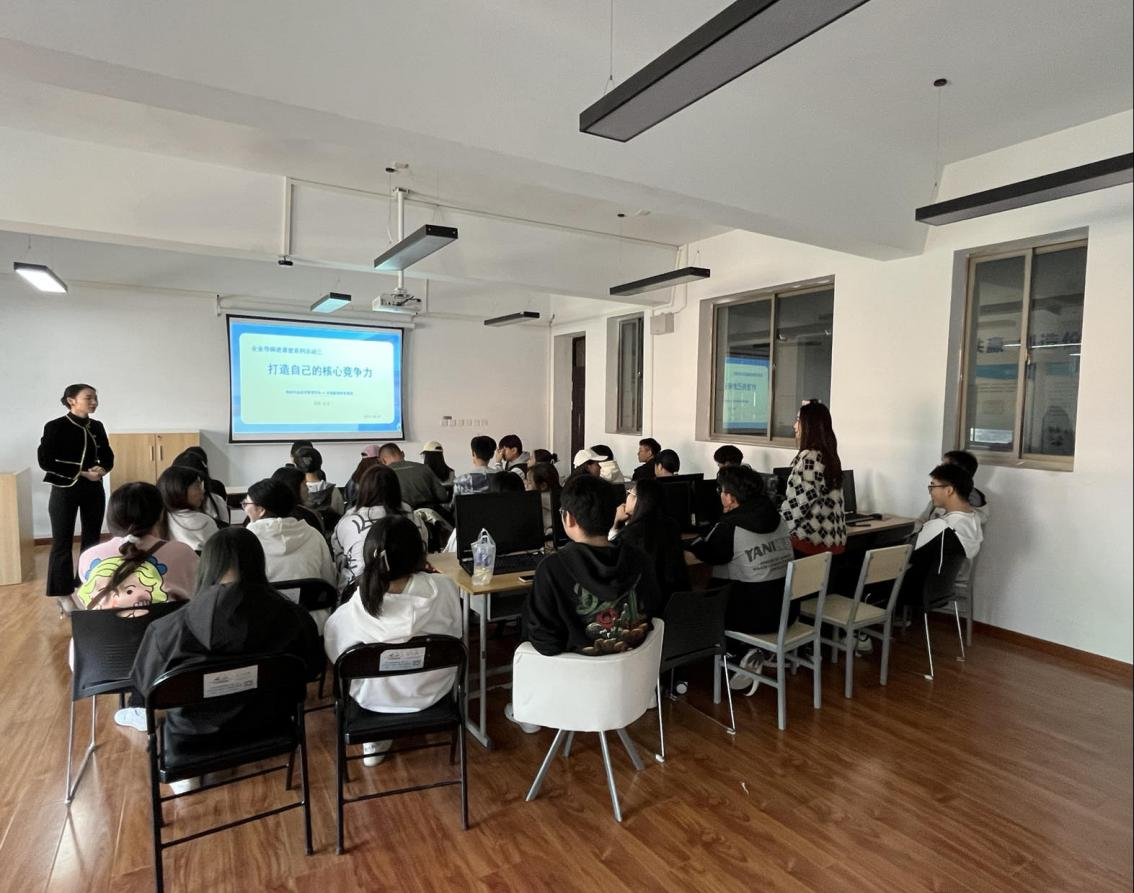 王玉老师结合自身求学、创业经历和目前就业现状,分别从定方向、定目标、提能力、盯过程和勤复盘五个方面,向同学们讲解了如何规划未来职业生涯、如何在未来职业发展中提升自身竞争力等问题。王玉老师向同学们讲解了如何借助工具分析自身优势,并建议同学们有针对性地与企业对接,根据税收岗位发展方向对口就业、考取证书。