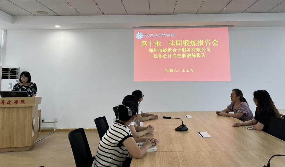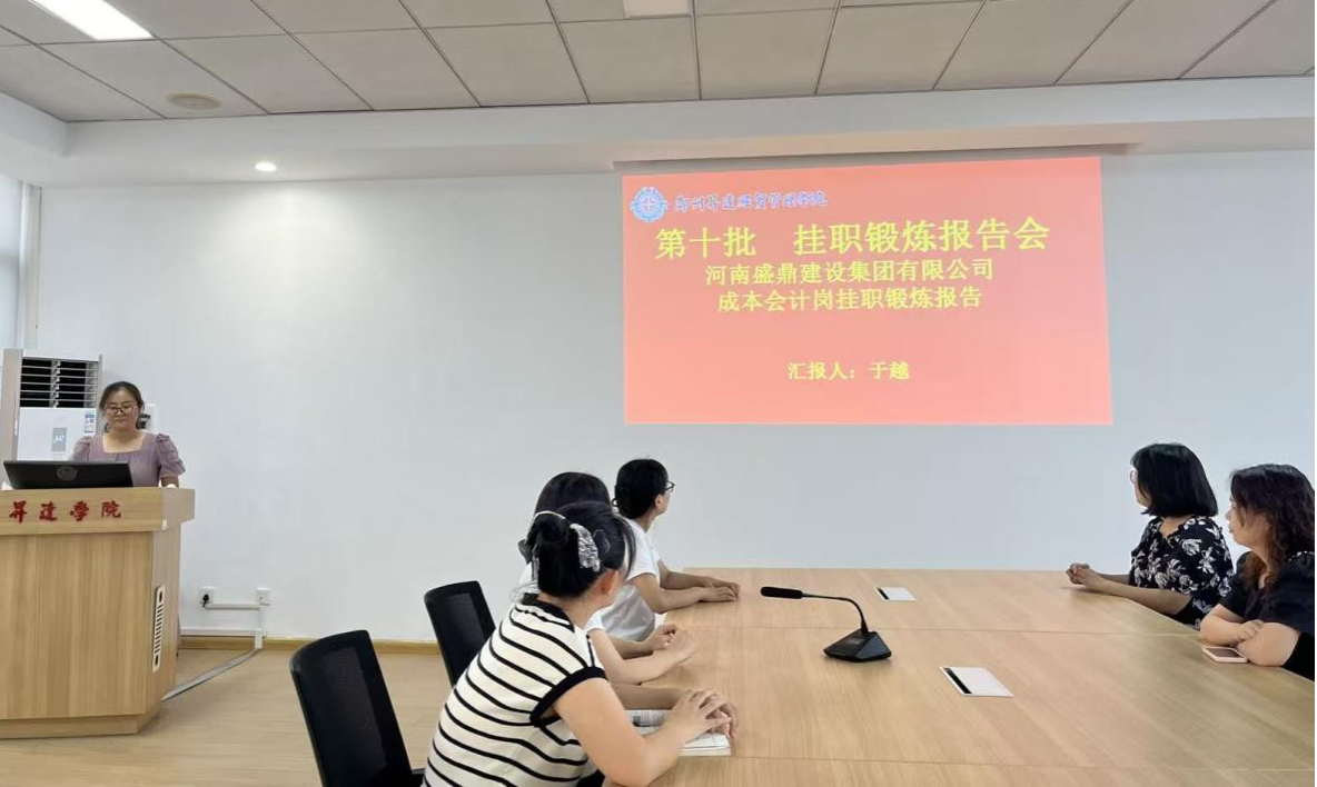 王玉飞老师挂职于郑州市盛世会计服务有限公司的税务会计岗,在税务申报、税务筹划等方面得到了充分的锻炼,对税务相关政策与实操有了更深入的把握。于越老师则在河南盛鼎建设集团有限公司的成本会计岗挂职,专注于成本核算与控制等相关工作,积累了丰富的行业实践经验。