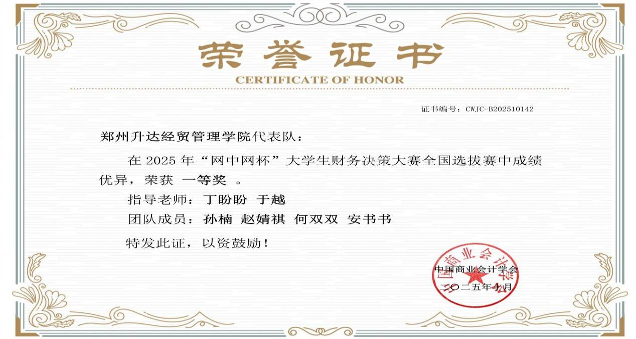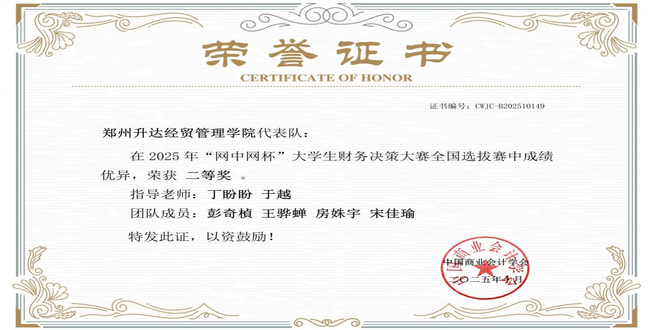 2025年10月12日,在全国选拔赛中,“深藏不露队”与“财思破茧队”分别荣获一等奖和二等奖。其中,“深藏不露队”以河南省第二名的优异成绩脱颖而出,成功晋级全国总决赛,将代表公司亮相全国舞台,展现会计学子的专业风采。
