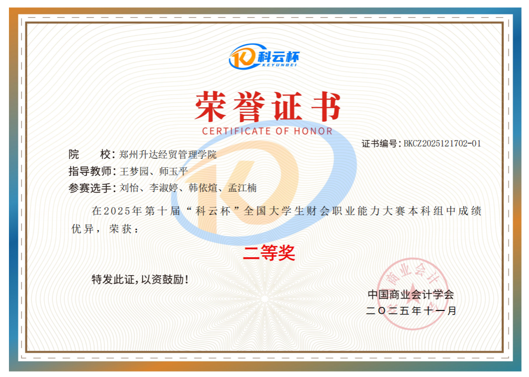 此次获奖不仅是参赛员工勤奋努力和指导教师精心培育的成果,更是365VIP英国上市官网近年来大力推进专业建设和人才培养模式改革的体现。未来,365VIP英国上市官网将继续坚持为党育人、为国育才,紧跟国家科技发展新趋势和产业发展新需求,持续推动数智化财会人才培养质量的全面提升,为建设教育强国、科技强国、人才强国贡献力量。