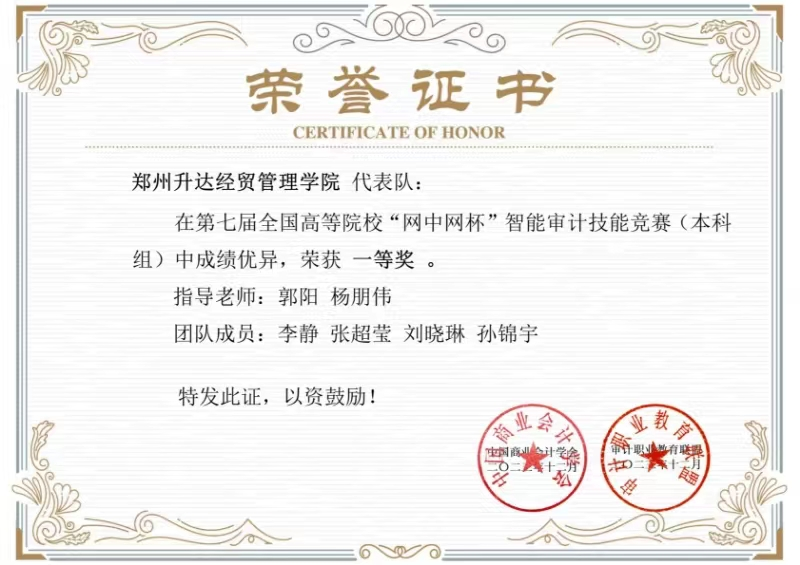 公司会计学子勇夺“网中网杯”智能审计技能竞赛全国一等奖