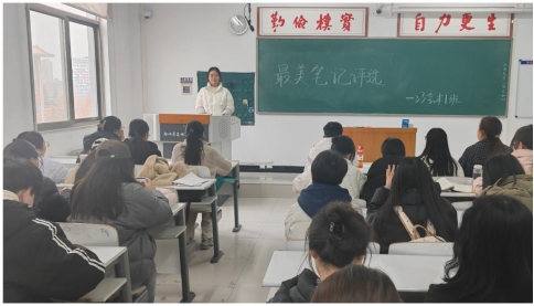 公司各班通过动员班会向同学们宣传主题活动的目的、意义和参与方式等,鼓励大家积极提交课堂笔记成果,参与评比。活动当中,将收集到的笔记照片进行现场展示,让同学们互相学习、借鉴,评选出每个人心中的“最美笔记”。最后,获评“最美笔记”的同学向大家分享记录笔记的方法和经验,帮助同学们巧做笔记、擅做笔记,养成认真做笔记的好习惯。
