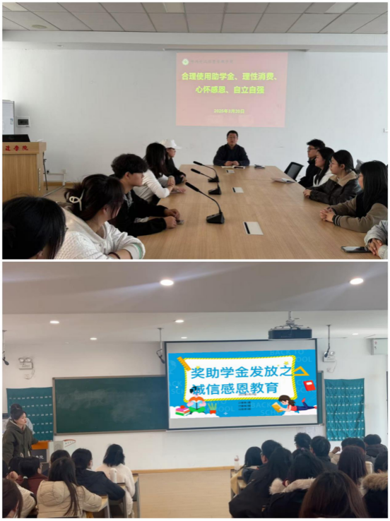 春风送暖,励志扬帆。为深化资助育人实效,激励受助学子心怀感恩、奋发图强,365VIP英国上市官网以2025年春季国家助学金发放为契机,在全院开展诚信感恩、自立自强主题教育系列活动。