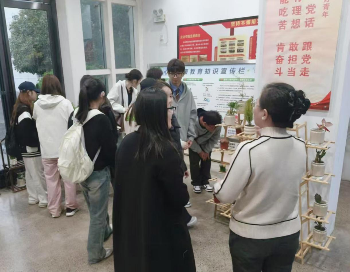 活动中,心航路社团的成员提前为同学们准备了各类绿植,如多肉、绿萝、薄荷等易养护的绿植,并附赠专属领养卡片。活动开始后,社团负责人先为同学们讲解此次活动以及领养要求,然后让同学们依次有序的领养喜欢的绿植,最后在卡片上写下属于自己的标志。在活动现场大家专注于手中的绿色小生命,开心的交流起来,现场欢声笑语不断,气氛热烈而温馨。