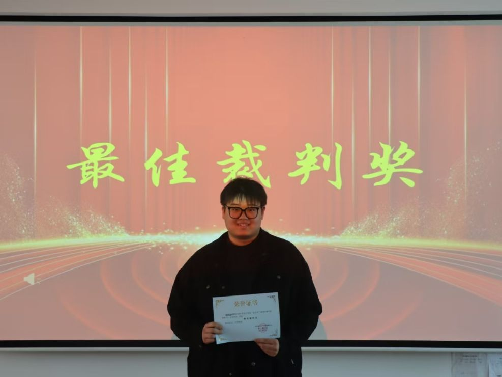 篮球比赛不仅是体育竞技,更是团队精神与体育精神的完美展现,为了对2025年“会计杯”篮球赛中参赛队伍的积极参与和努力拼搏精神表示肯定,4月10日12:10在教学四号楼108教室举行了颁奖仪式,分别为获奖的参赛团队颁发了道德风尚奖、冠军、亚军、季军荣誉证书及奖品,23级大数据与会计六班赵烨涵荣获“最佳裁判奖”。