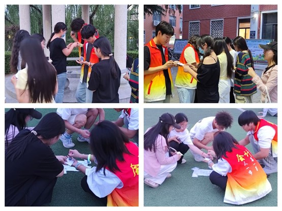 在活动现场,志愿者倡议同学们不仅要积极主动地完成校园8000步打卡和校园跑等助力健康的任务,同时也要迈开步子主动到室外活动。通过签名互动和收集印章等小礼品赠送的方式吸引大家主动走到室外,感受青春的活力;同时通过组建QQ群和进行夜游日记的评选活动,让更多人放下手机,告别种种因不运动而导致的疾病,走到室外和同学们分享自己的所见所闻所感。