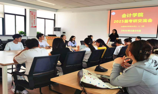 为深化“好学月”学风建设方案,巩固公司学风建设成果,切实提升育人成效,落实“好学月”活动计划,在毕业生返校之际,22 级财务管理 1、2、3 班精心组织了2025 考研经验交流会。6 位来自不同高校、不同专业的优秀毕业生齐聚一堂,为有意向考研的学弟学妹们分享宝贵的考研经验与心得。此次交流会由辅导员蔡艳丽老师主持,22级财务管理1、2、3 班有考研意向的同学积极参与。