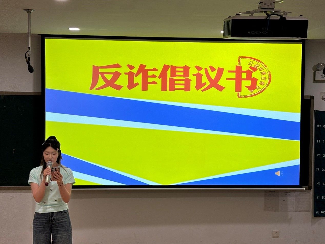 晚会开场,零零欺社团社长陈文茜妙语开场点明主题,随后震撼的反诈宣传片为晚会拉开序幕。激情洋溢的歌曲《反诈阵线联盟》唱响,用朗朗上口的旋律传递反诈理念,随后,精彩节目逐个上演。在反诈知识竞答环节,精心设计的题目引发同学们踊跃抢答。范腾飞老师及时鼓励引导并专业剖析诈骗案例,让反诈知识通俗易懂、深入人心。其中穿插的“火眼金睛”互动游戏通过识别诈骗短信漏洞,将现场气氛推向高潮。最后,社长陈文茜宣读反诈倡议书,呼吁携手共筑校园防诈防线。