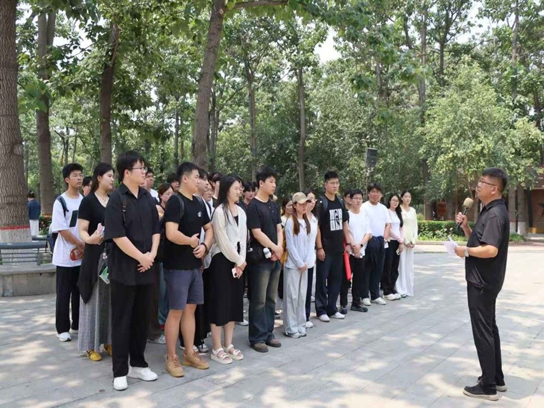 在焦裕禄同志亲手栽种的 “焦桐”树下,陈刚老师结合兰考治沙历史,生动讲述了焦裕禄同志 “敢教日月换新天” 的奋斗历程。他指出,焦裕禄精神中 “亲民爱民、艰苦奋斗、科学求实、迎难而上、无私奉献”的核心内涵,与新时代青年干部应具备的责任担当高度契合。“这棵历经风雨的焦桐,不仅是兰考人民战天斗地的见证,更是共产党人初心使命的象征。” 陈老师的话语掷地有声,让在场学子深刻感受到焦裕禄精神穿越时空的思想光芒和实践力量。