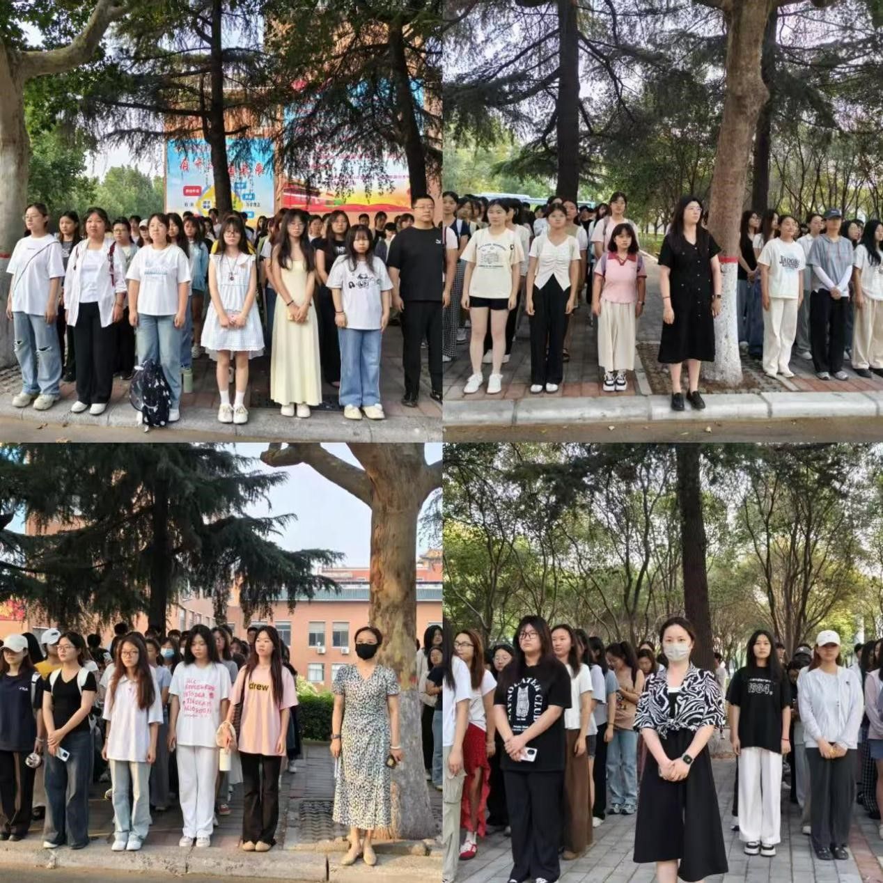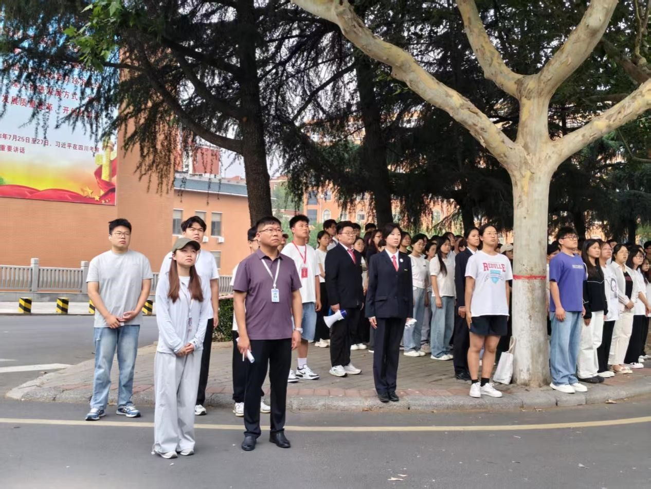 炽热鲜艳的五星红旗徐徐挂上旗杆,随着一声铿锵有力的“向国旗敬礼”,全体师生昂首挺胸,神情庄严肃穆。他们整齐划一地面向国旗台,目光如炬,行注目礼。这一刻,每个人眼中跃动着炽热的家国情怀,坚定不移的眼神是青春热血的澎湃,是与祖国同呼吸、共命运的使命担当,更饱含着对祖国深深的认同感与自豪感。