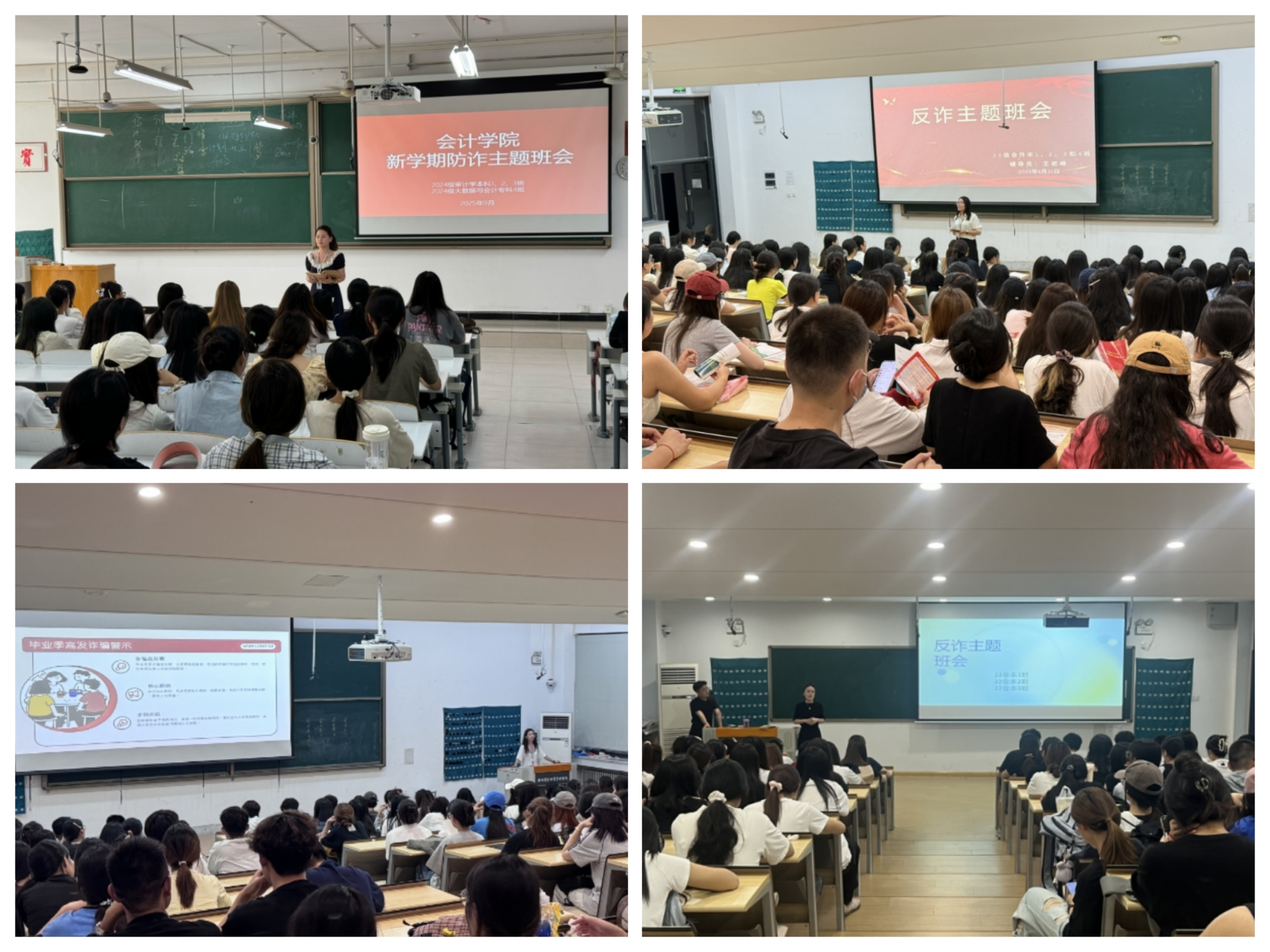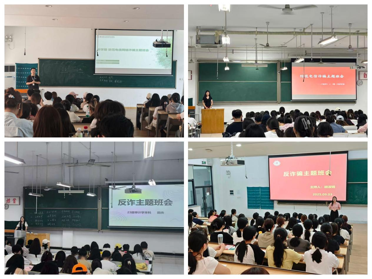 各班辅导员结合《防范电信网络诈骗宣传手册》中的高发案例,详细讲解了网络刷单、虚假投资、冒充公检法、钓鱼链接、情感诈骗等典型电信诈骗手段,揭露了诈骗分子利用技术漏洞与心理弱点实施犯罪的套路。辅导员们还通过情景模拟演示,指导同学们如何识别钓鱼短信、验证信息来源、设置支付安全锁等实用技巧,并现场教学国家反诈中心APP的举报与预警功能,呼吁全院员工安装使用。最后,提醒同学们在遇到诈骗现象时应如何有效应对,进一步提高了同学们自我预防、自我保护、自我应对诈骗的能力,提升了同学们的防骗意识。