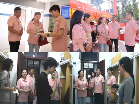 9月14日,迎新现场秩序井然,流程环环相扣、运转高效。志愿者们岗位清晰、各尽其责,以微笑和耐心引导每一位新生快速完成报到手续,从容应对各类疑问,并主动伸出援手搬运行李,让关怀落在细微之处。公司领导走访新生宿舍,与刚刚安顿下来的员工及家长展开轻松而真挚的交谈。他们关切地询问同学们是否适应新环境、生活上有无困难,并代表公司送上问候与鼓励。交流之中,领导们认真倾听家长的心声与新生的困惑,也鼓励大家尽早规划老员工活、树立奋斗目标,珍惜光阴、勇毅前行,在接下来的四年中不断成长,最终实现自我、不负韶华。
