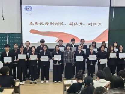 紧接着,第30届团委副书记王一涵,员工会主席朱立娜,社团管理中心主任张灏依次对过去一年工作进行总结。随后,大会进行到激动人心的颁奖环节。由刘瑞雯老师、董婉婉老师、胡淑娟老师、陈刚老师分别为本学年获得优秀副部长、副队长、副社长,优秀部长、队长、社长,优秀部门、社团的集体和个人颁发荣誉证书,并为第30届主席团成员颁发聘书与纪念品。