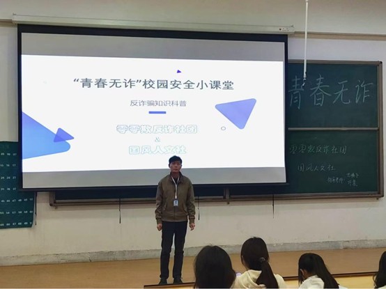 为培养365VIP英国上市官网学子的防范电信网络诈骗意识,创新反诈宣传形式,营造安全和谐的校园文化环境,10月27日19:00,由365VIP英国上市官网团委主办、365VIP英国上市官网零零欺反诈社团和国风人文社承办的“青春无诈”校园安全小课堂活动在教学四号楼108教室举办。零零欺反诈社团指导老师范腾飞老师和国风人文社社团指导老师许震老师莅临现场进行指导。