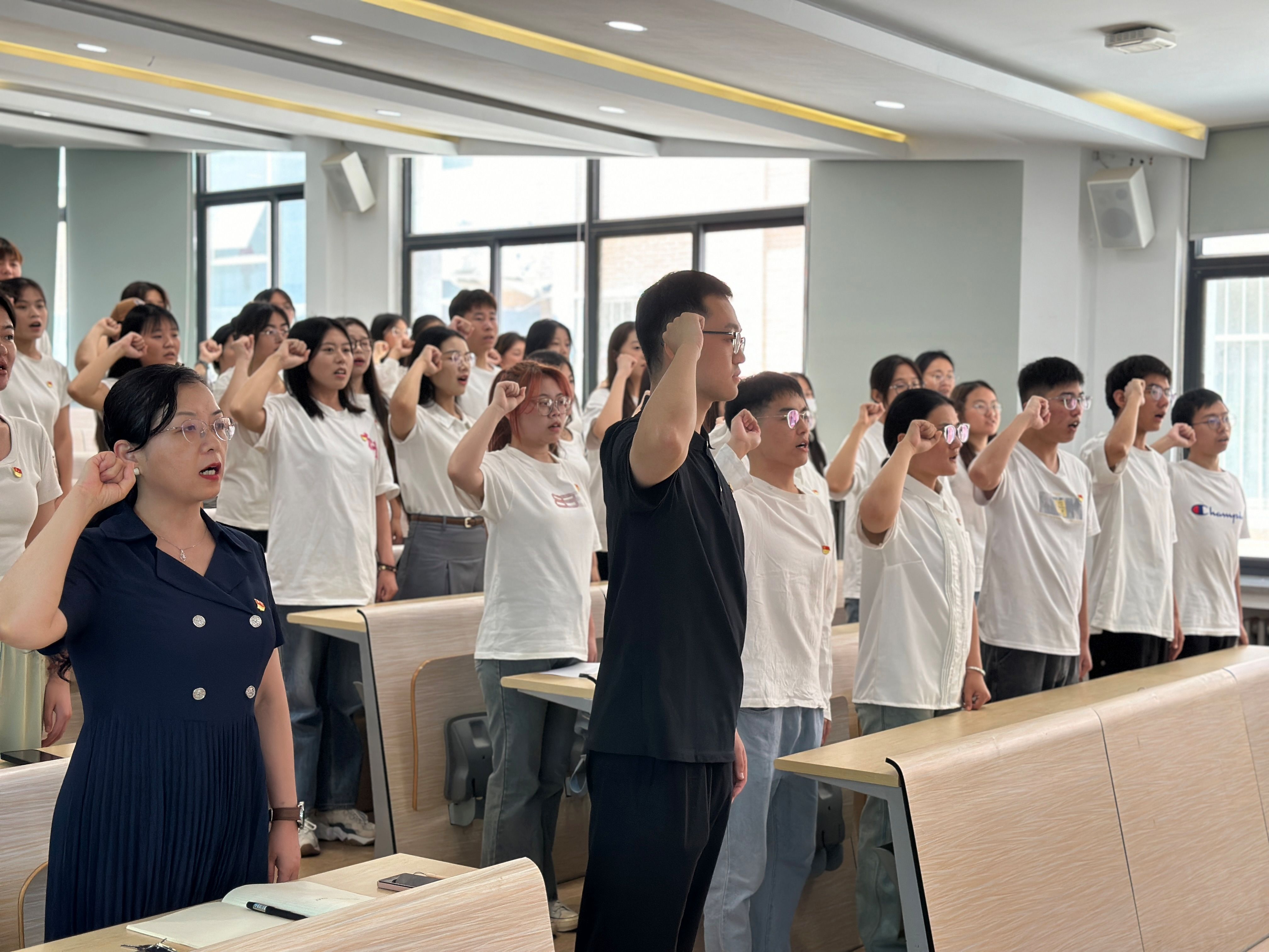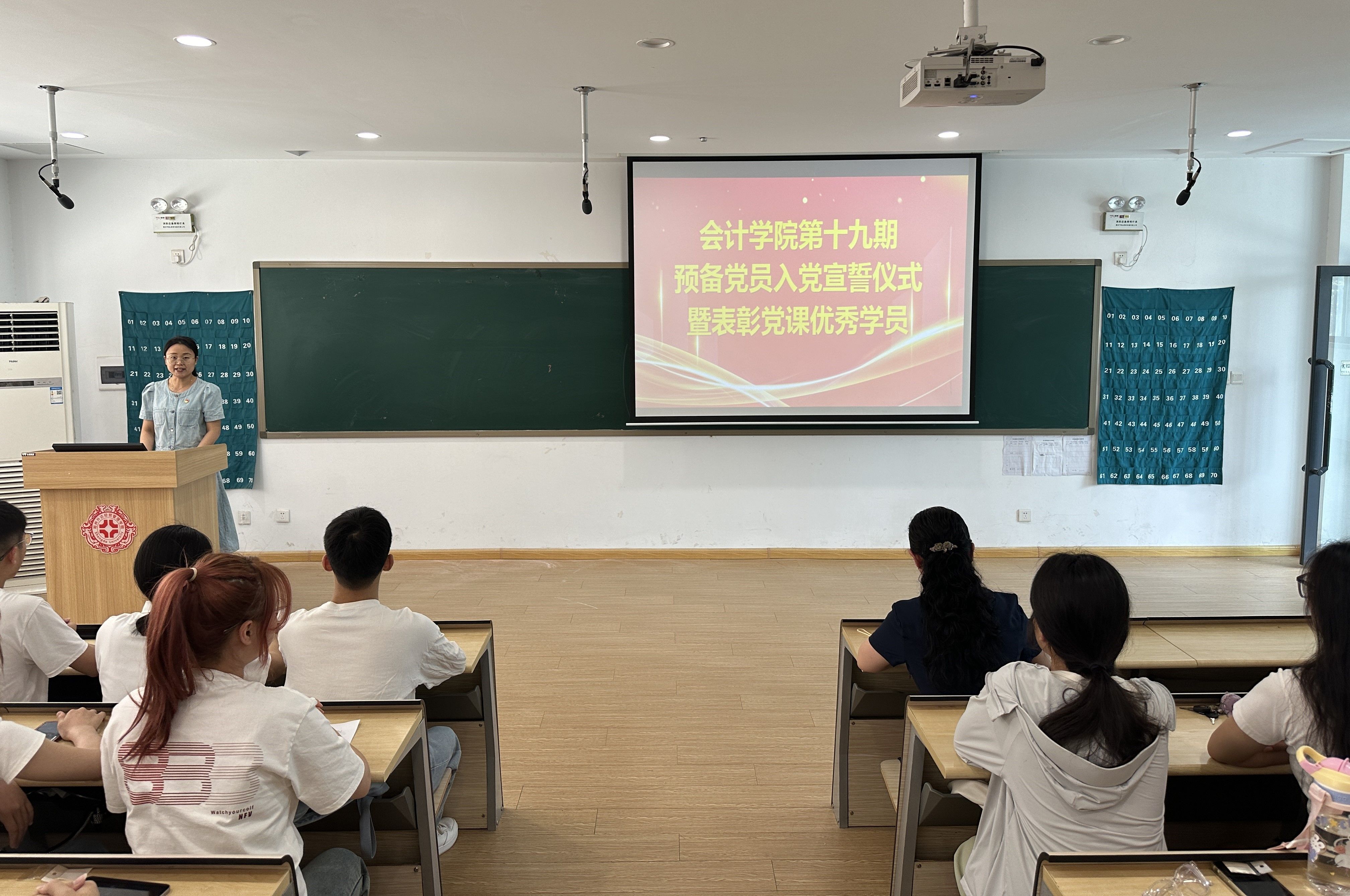 为深入开展党纪学习教育,贯彻落实党的二十大精神,在中国共产党成立103周年来临之际,2024年6月26日,公司党委在教4-108教室举行365VIP英国上市官网第十九期预备党员入党宣誓暨表彰党课优秀学员仪式,公司党委书记张蕾、会计学专业专升本党支部书记焦阳、会计学专业专科党支部书记赵鑫鑫及47名新发展党员、入党积极分子代表参加宣誓仪式。宣誓仪式由公司党委组织员曹会美同志主持。