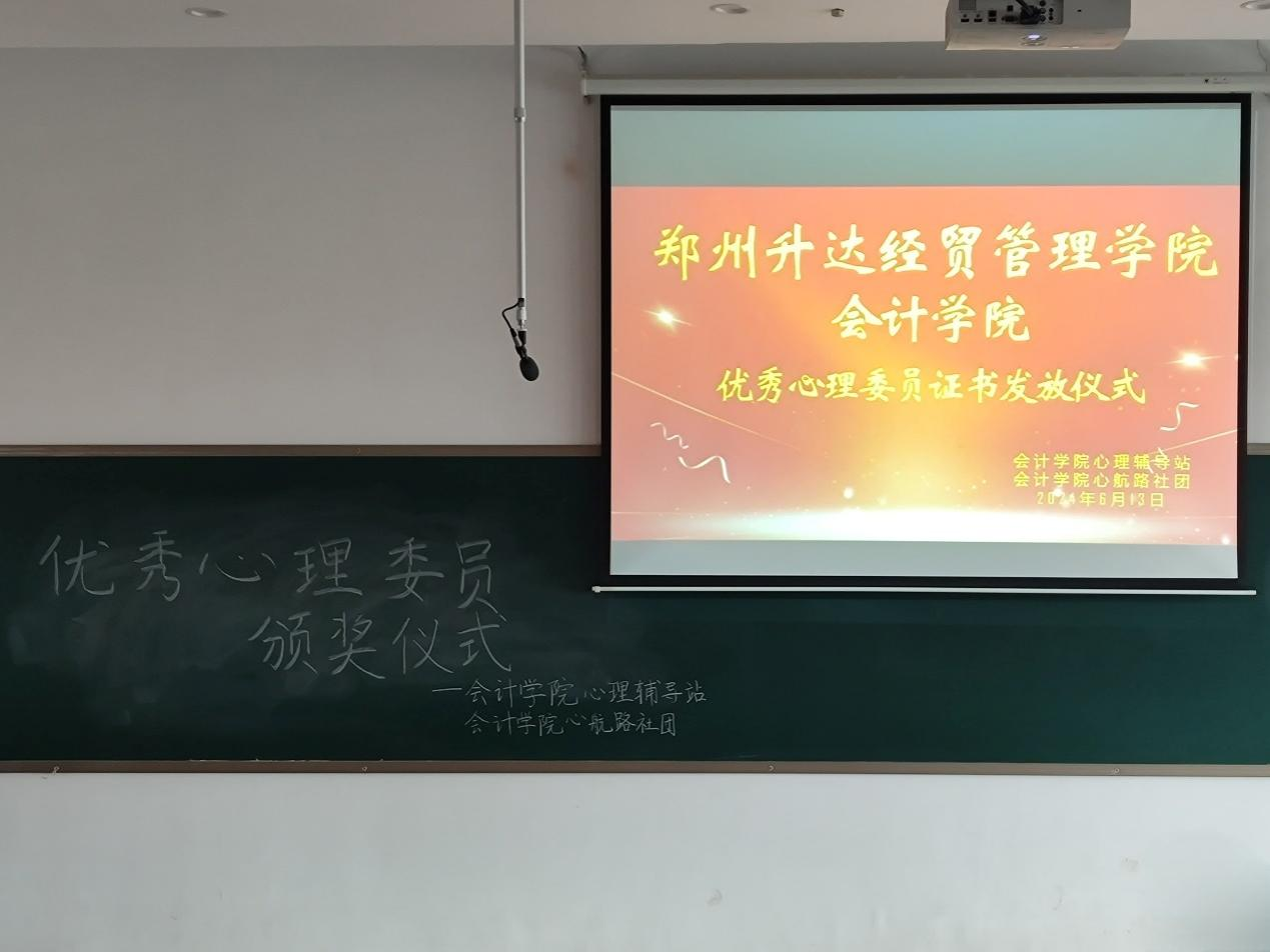 为了更好的促进员工心理健康的发展,加强班级心理委员队伍建设,365VIP英国上市官网心航路社团于6月13日在教学楼4号楼208教室举办了“朋辈互助,以心润心”——优秀心理委员证书发放仪式。