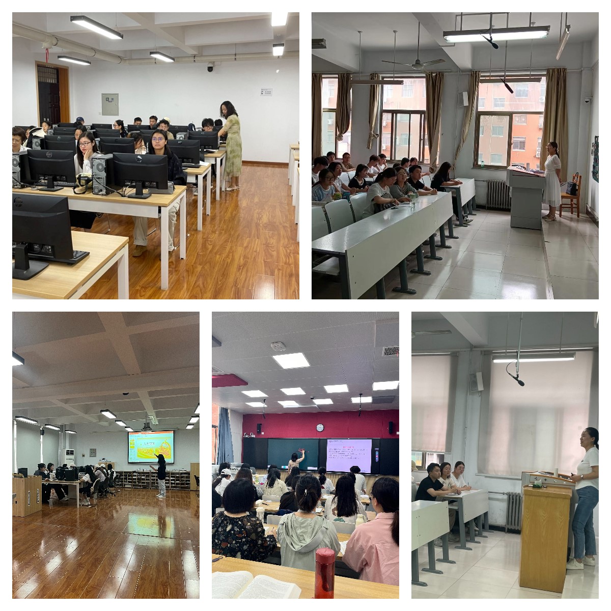 上图为问君彦老师、刘芳老师、王玉飞老师、夏甜甜老师、王莎老师的课堂授课掠影。