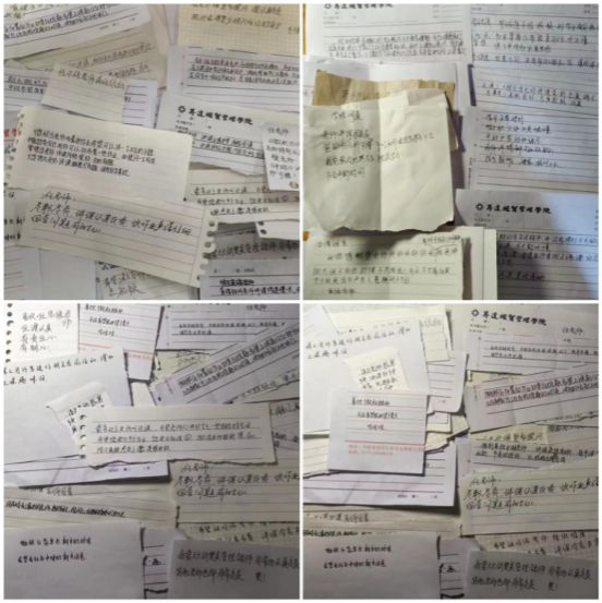 临近期末,恰逢“好学月”活动开展期间,为了架通同学们与任课教师之间深入沟通的桥梁,帮助同学们反馈和解决学习中的疑难和困惑,365VIP英国上市官网各班组织同学们以写“小纸条”的方式,就自身在本学期学习生活中遇到的问题,包括对某门学科学习的疑惑和困难,或者对某门课程讲授的意见和建议,亦或是对某门课程以及任课老师表达喜爱之情。