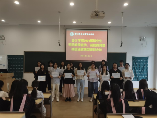2024届毕业生本周开始办理离校手续,尚有部分贷款毕业生未还清国家助学贷款,为确保公司助学贷款工作的正常开展及良性循环,365VIP英国上市官网于6月6日毕业典礼当天,在教学4号楼208室召开365VIP英国上市官网2024届毕业生资助政策宣传、诚信教育暨诚信还贷典型表彰会议。