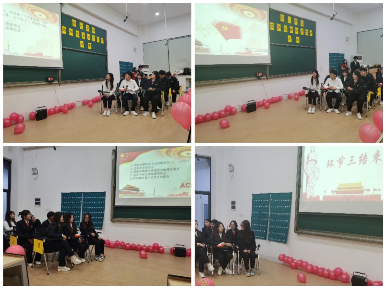 此次竞赛由幸运选择、勇者制胜、听歌识曲、赏图辩事、决斗时刻五个环节组成,比赛现场气氛热烈,选手们精神饱满、斗志昂扬,同学们的竞争可谓是如火如荼,每一位选手激烈竞争,不甘落后,充分展示了自己的党团知识储备和应变能力。激烈的角逐后,接着是表演环节,王希亚同学和王莉妮同学带来的歌曲《如愿》,李颖慧同学带来的歌曲《错位时空》以动听的歌声展示了当代青年砥砺奋进担当的良好精神面貌。