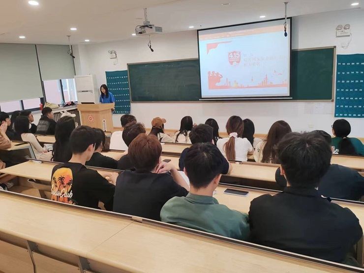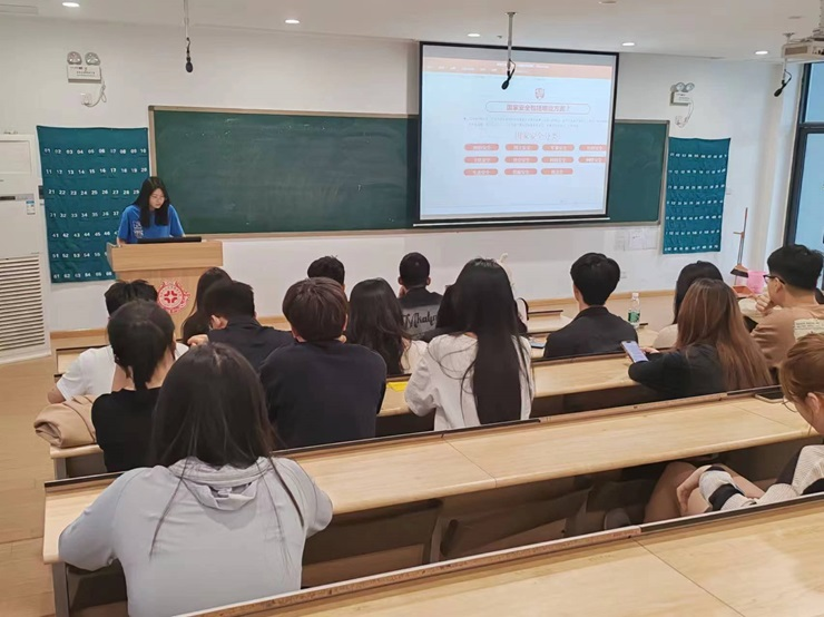 李梦薇阐述了新时代国家安全的丰富内涵和外延,接着第二组成员对国家安全进行了研讨展示,以案例讲述了当前国家安全和保密工作面临的挑战,同时分享了一些危害国家安全的案例,强调了维护国家安全人人有责。会议最后通过“击鼓传花”的游戏互动和填写“全民国家安全教育日”知识测试题的方式对国家安全知识进行巩固。
