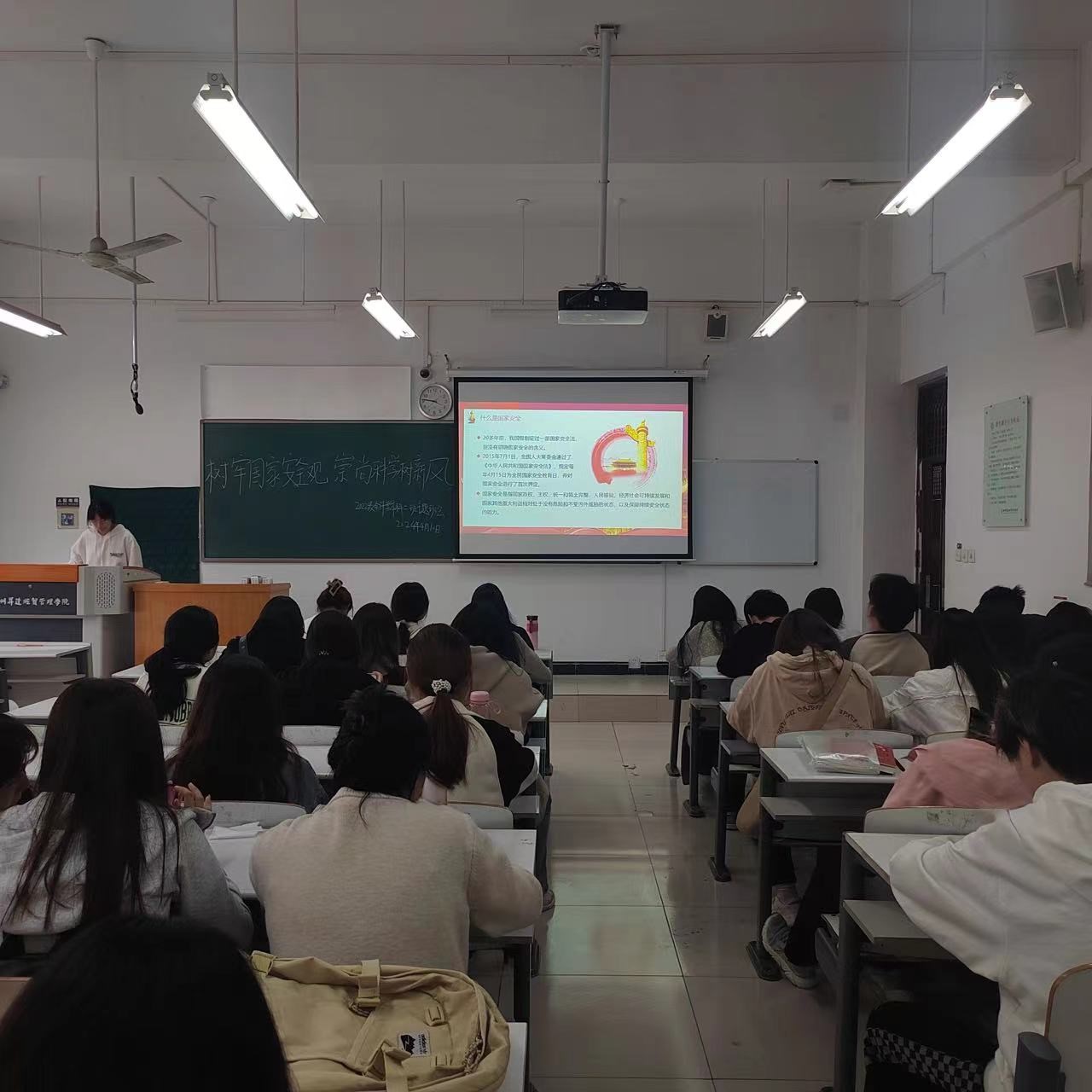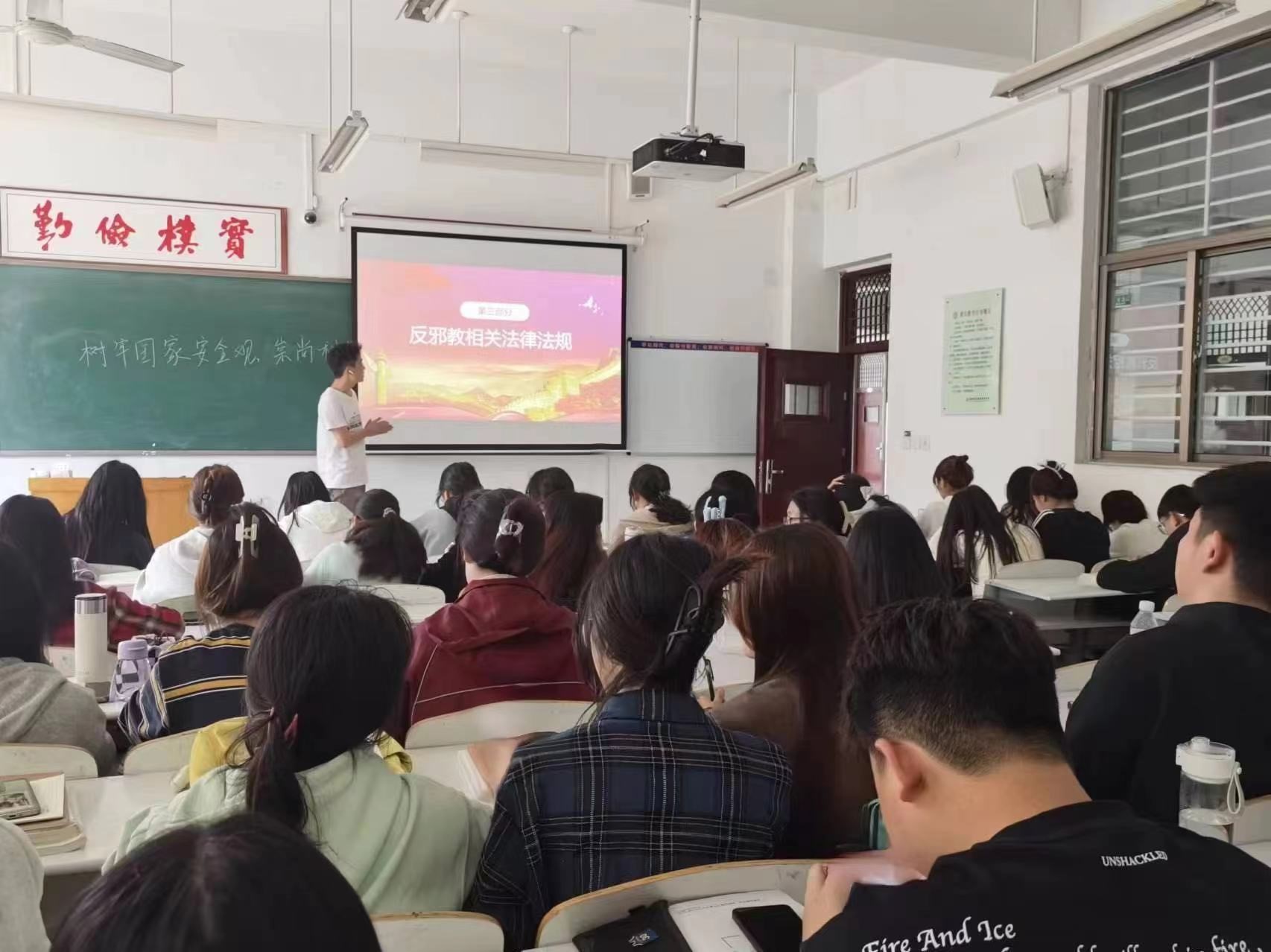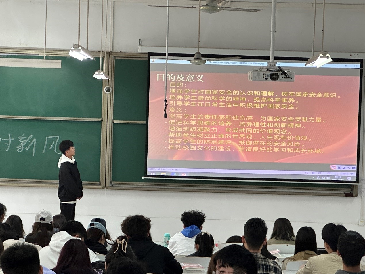 各班辅导员老师精心策划,通过多媒体展示、讲解、讨论等多种形式,向同学们详细介绍了国家安全的内涵、外延以及当前面临的形势与挑战。在班会上,辅导员老师们通过生动的案例,让同学们了解到了国家安全面临的复杂环境和严峻挑战,增强了同学们的国家安全意识和危机意识,并向同学们强调了反邪教宣传教育是维护国家安全教育的组成部分,要加强对国家安全和反邪教法律法规的学习,切实提高自身对邪教组织的警惕性、鉴别力和防范力。