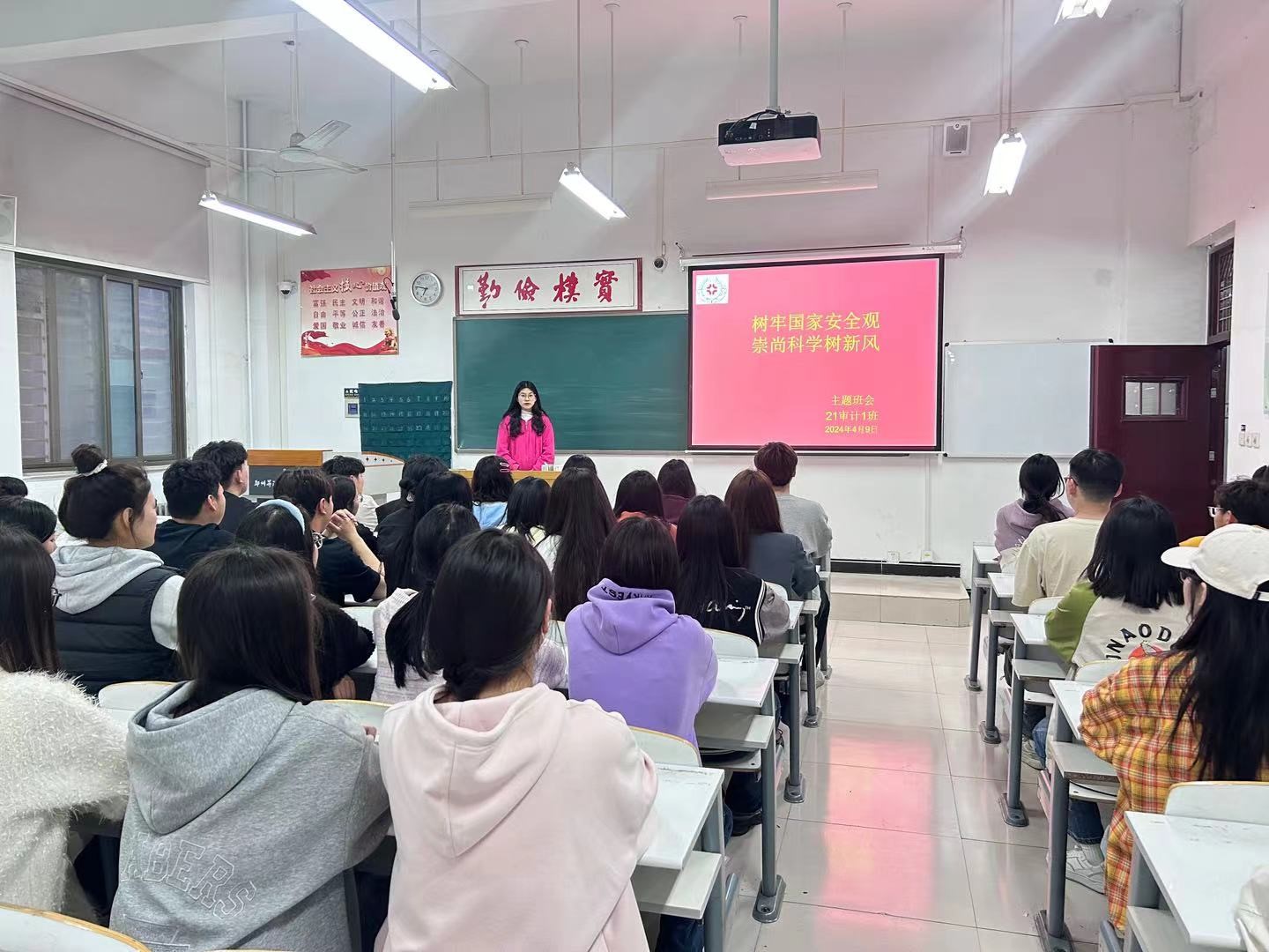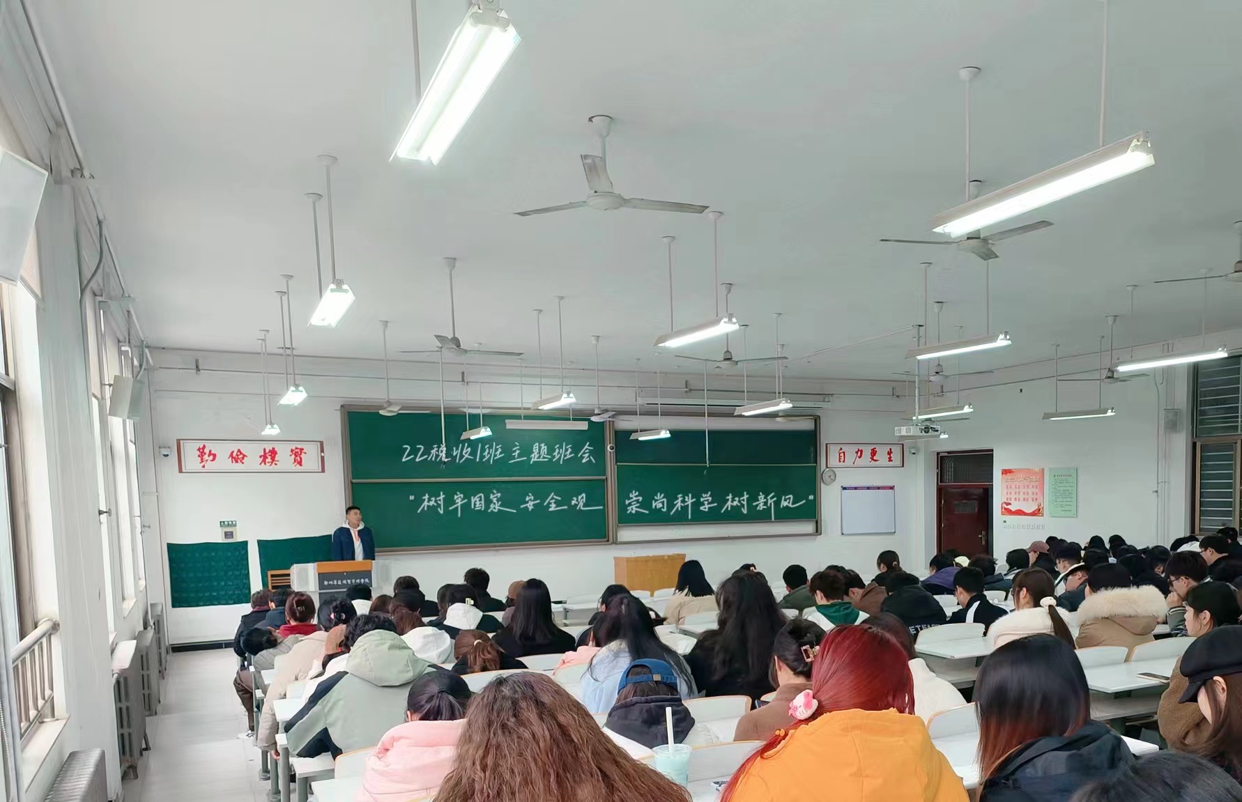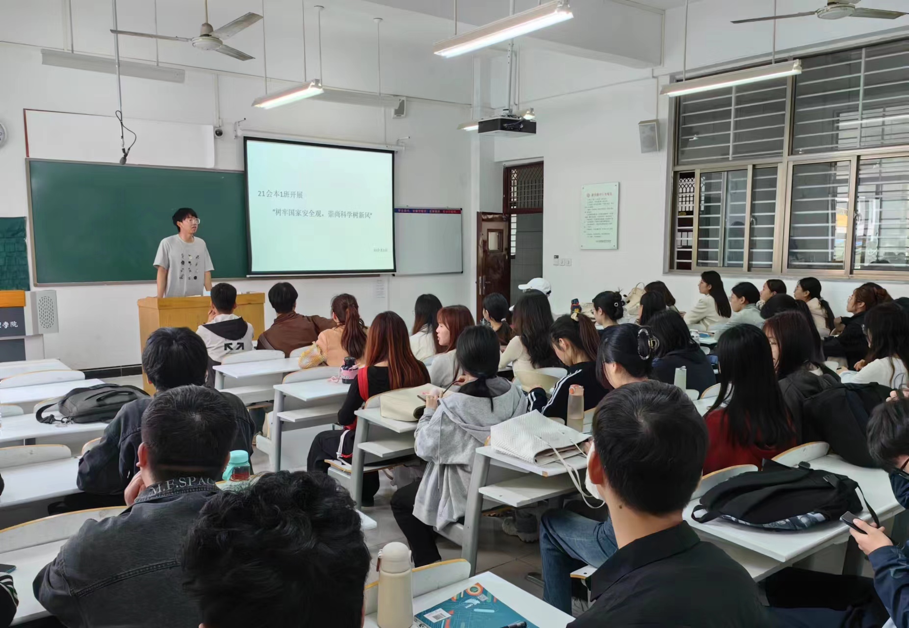 各班辅导员老师精心策划,通过多媒体展示、讲解、讨论等多种形式,向同学们详细介绍了国家安全的内涵、外延以及当前面临的形势与挑战。在班会上,辅导员老师们通过生动的案例,让同学们了解到了国家安全面临的复杂环境和严峻挑战,增强了同学们的国家安全意识和危机意识,并向同学们强调了反邪教宣传教育是维护国家安全教育的组成部分,要加强对国家安全和反邪教法律法规的学习,切实提高自身对邪教组织的警惕性、鉴别力和防范力。
