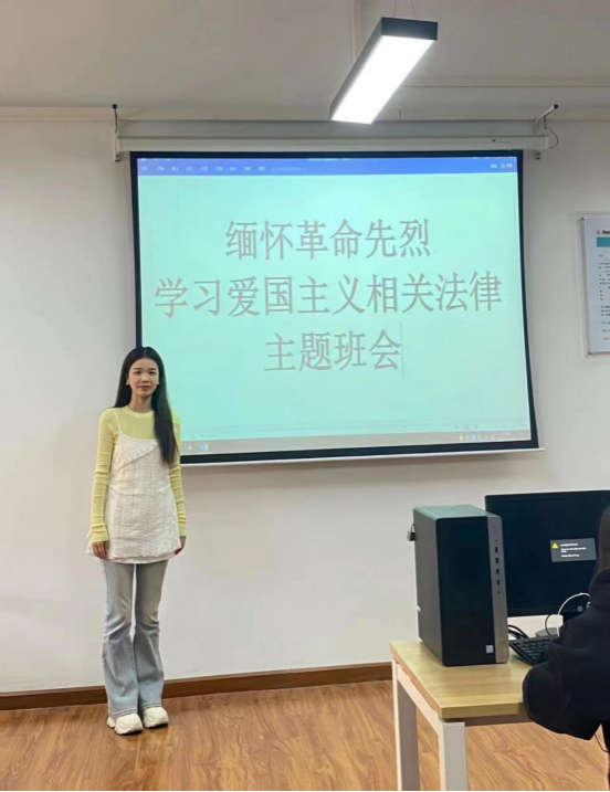班会伊始,辅导员老师给同学们分享了《中华人民共和国爱国主义教育法》《中华人民共和国英雄烈士保护法》《革命烈士褒扬条例》等相关爱国主义法律法规,呼吁同学们在清明节期间能够深入学习和宣传,并且自觉履行起维护国家统一和民族团结,维护国家安全、荣誉和利益的义务。