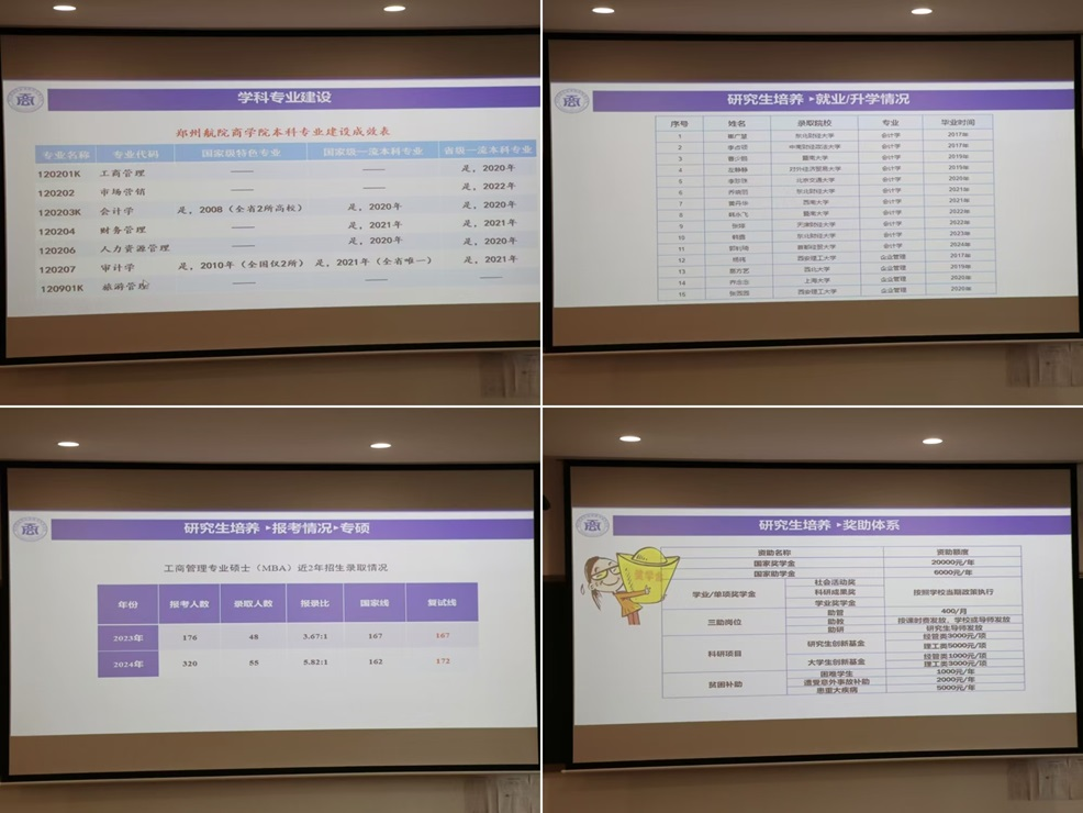 闫明杰老师首先对郑州航空工业管理公司的整体情况进行了介绍,使同学们对公司的历史沿革、办学特色、校园文化等有了初步的认识。接着,闫明杰老师重点介绍了商公司的研究生教育。她详细阐述了各个专业的研究方向、团队力量、科研成果以及就业前景等方面的内容,通过生动的案例和翔实的数据,向同学们展示了商公司在公司产品方面的优势和特色。在互动环节,同学们就自己在备考过程中遇到的困惑向老师积极提问,老师耐心地一一解答,为同学们提供了个性化的指导,同学们纷纷表示收获颇丰。