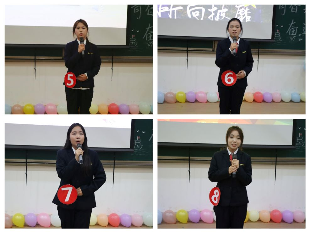紧接着第二环节的即兴演讲更是展现了选手临场应变的能力,结合选手自己抽到的关键词,一声声铿锵有力的话语中传达出:“梦想”是人生的灯塔,闪烁着希望的光芒;“坚持”是通往成功的阶梯;“成长”是一场美丽的蜕变;“创新”是开启未来的钥匙;“团结”凝聚了无数力量。
