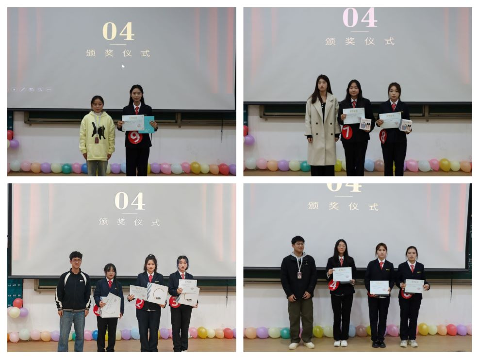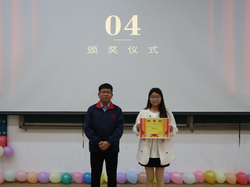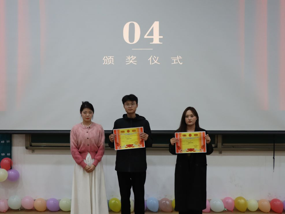比赛结束后,由员工会主席朱立娜、团委办公室主任周晓梦、员工会副主席原恒祥、团委书记助理王浩分别为获奖同学颁奖;由陈刚老师、董婉婉老师、团委副书记王一涵分别为获得最佳组织奖、道德风尚奖、精神文明奖的班级颁奖,演讲比赛圆满结束。