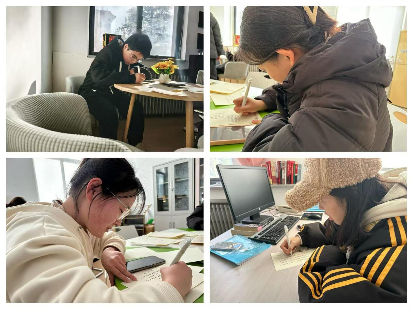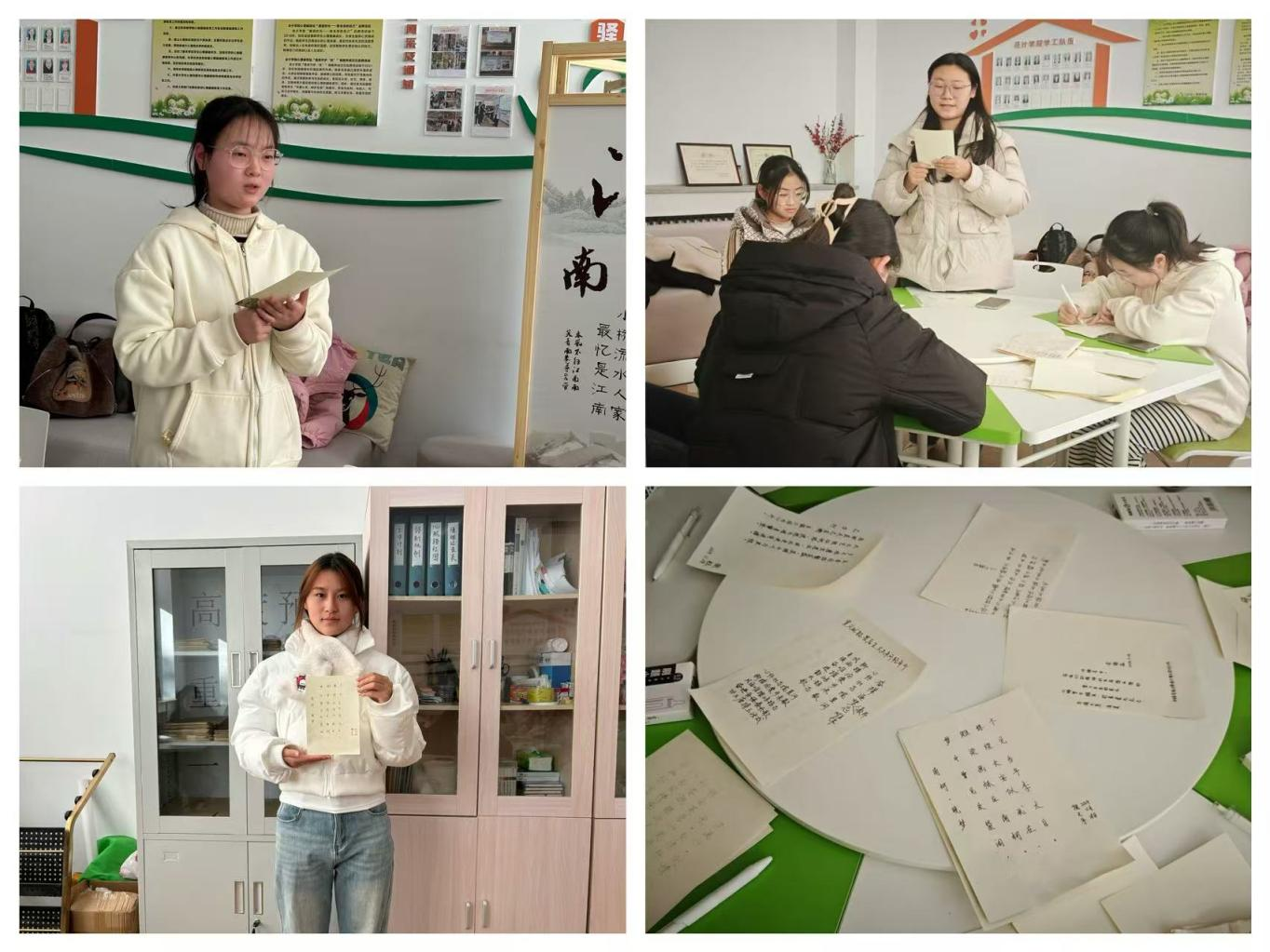 首先,国风人文社副社长倪天宇讲述了本次诗词创作活动的主旨和意义,希望同学们在限定时间内完成相关主题诗词的创作与书写。活动过程中,同学们积极思索,同时研习书法。他们笔尖轻舞、诗意飞扬,深刻探究诗词蕴含的魅力,诗词创作结束后,同学们依次介绍自己的创作灵感并相互进行欣赏、评鉴,活动效果良好。