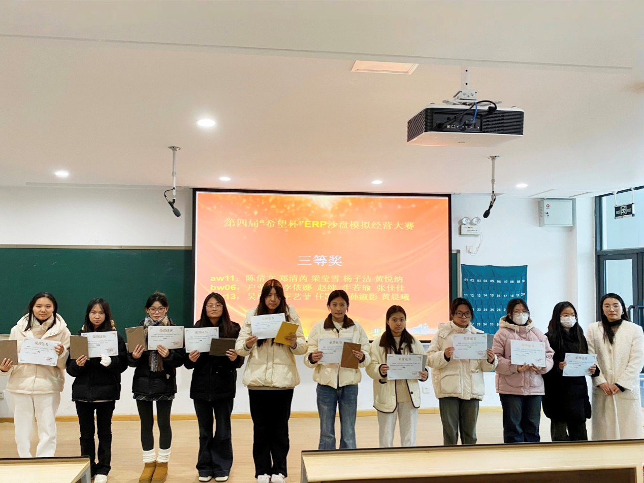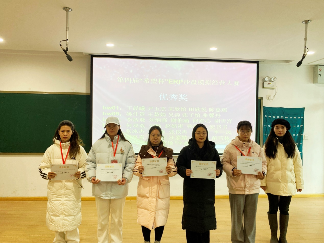 12月11日12:20在教学楼四号楼108室举办了颁奖仪式。出席颁奖现场的嘉宾有:365VIP英国上市官网行政秘书兼团委书记陈刚老师,团委副书记胡淑娟老师,辅导员张高老师,ERP沙盘协会指导老师张瑞娅老师以及第30届社团管理中心主任张灏等。