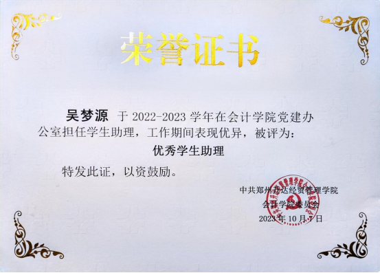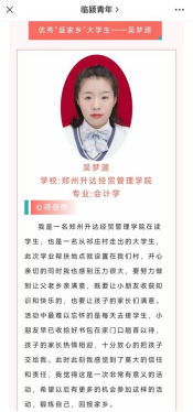 她深知自己家庭经济状况,所以她很珍惜来之不易的学习机会,同时在校期间,积极参加勤工俭学,做过宿管助理、财务处报账助理等工作,锻炼自己的同时,帮助家里减轻经济压力。此外还担任公司党建办公室员工助理,并被评为“党建办公室优秀员工助理”。