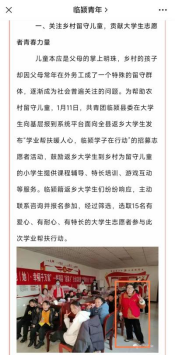她真诚善良,虽身体残疾,行动不便,却积极参与返家乡社会实践活动,用实际行动为家乡建设发展贡献青春力量。作为从农村走出来的老员工,她多次参加村镇社会实践活动,如疫情期间参与疫情防控志愿服务,并协助统计在外务工人员统计返乡信息。寒假期间,她积极为团县委策划举办“台陈镇留守儿童学业帮扶志愿服务活动”,作为志愿服务队队长,积极与村委会妇联办联系,召集所有留守儿童,同时召开志愿者会议,进行学业辅导、兴趣培养、游戏互动培训,受到了村民们的一致好评,并被当地媒体宣传报道。她用自己小小的身躯温暖着他人,也照亮了自己。