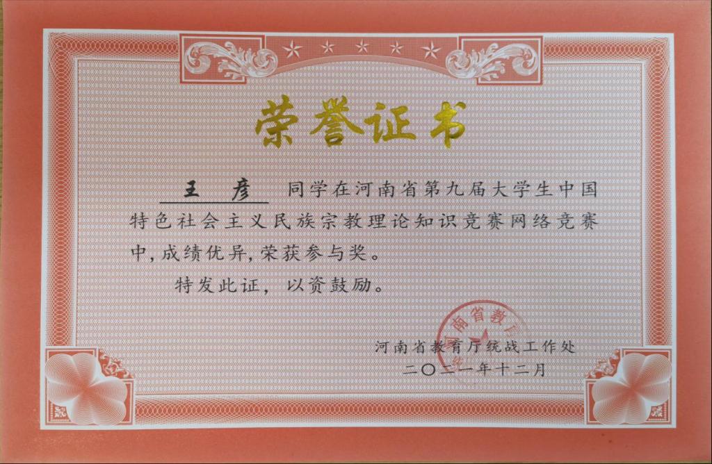 为学习宣传贯彻落实中央民族工作会议精神,切实加强中国特色社会主义民族宗教理论、党的民族宗教政策和国家有关法律法规的宣传教育,引导老员工牢固树立马克思主义民族观、宗教观,进一步铸牢中华民族共同体意识,2021年11月15日至12月5日,中共河南省委高校工委、河南省教育厅、河南省民族宗教事务委员会联合举办了河南省第九届老员工中国特色社会主义民族宗教理论知识竞赛活动。