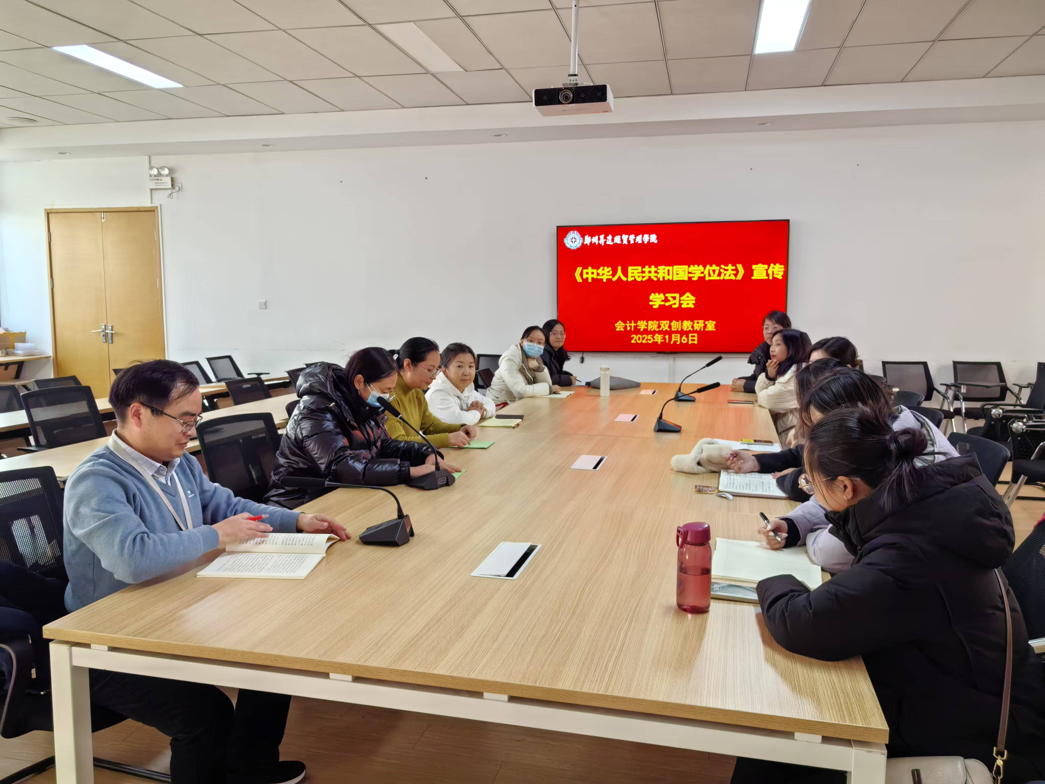为学习宣传与贯彻《中华人民共和国学位法》,2025年1月6日,365VIP英国上市官网双创教研室在4号楼209组织学习了《中华人民共和国学位法》。学习活动由教研室主任闫本宗老师主持,双创教研室全体教师参加。