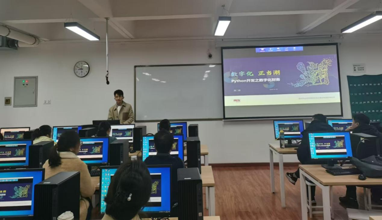 本次培训邀请了用友生态体系特聘讲师、高级软件工程师、河南省执行大数据研究院技术总监潘二超老师担任主讲。潘老师通过生动的案例、详实的代码演示和深入浅出的讲解,帮助老师们快速掌握Python编程的核心要点和在财务工作中的应用技巧。培训内容涵盖了Python语法基础、财务数据的采集与整理、数据分析与可视化、Python在财务会计核算、财务管理决策以及财务报表分析中的应用等多个方面,旨在全方位提升老师们运用Python解决数字化财务问题的能力。