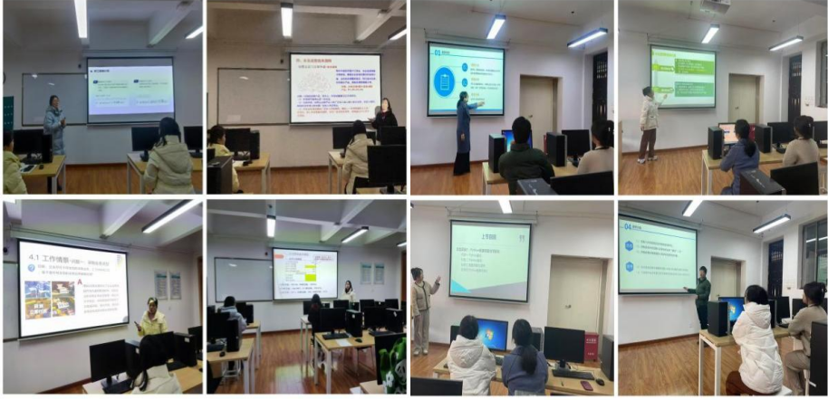 第四组在庞瑞博老师的组织下,赵颖、胡飞、白建慧等四位老师根据课程内容,采用BOPPPS教学模式、结合任务驱动、启发式教学等教学方法对《财务业务一体化》、《Python在财务中的应用》的课堂教学进行了演示和探讨。