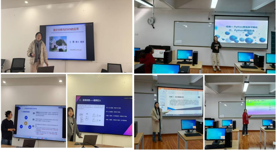 第五组在王慧教授的带领下,石彩丽、张洁三位老师分别对《统计分析与STATA应用》、《商业智能与可视化设计》、《统计基础》等课程的课堂教学进行了展示,并围绕如何提高课堂互动性、增强数据分析案例的实际应用性等问题进行了深入的讨论。