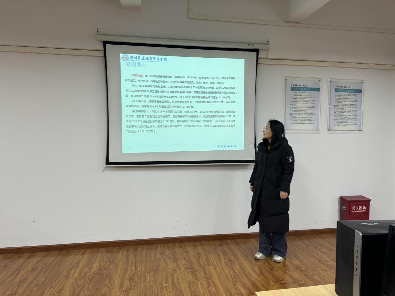 第一组中闫蕾、周雪梅和周锋老师分别就《企业模拟经营》、《公司治理》和《高级财务会计(下)》相关课程内容进行了教学展示,其中,周雪梅老师设计的案例新颖,借助热点话题分析了Deepseek公司股权结构的合理性;周锋老师紧扣职业证照的考试题型讲解;闫蕾老师逻辑思路清晰,教学设计完善。三位老师语言组织能力强,知识储备扎实,展现了老教师优秀的专业素养。