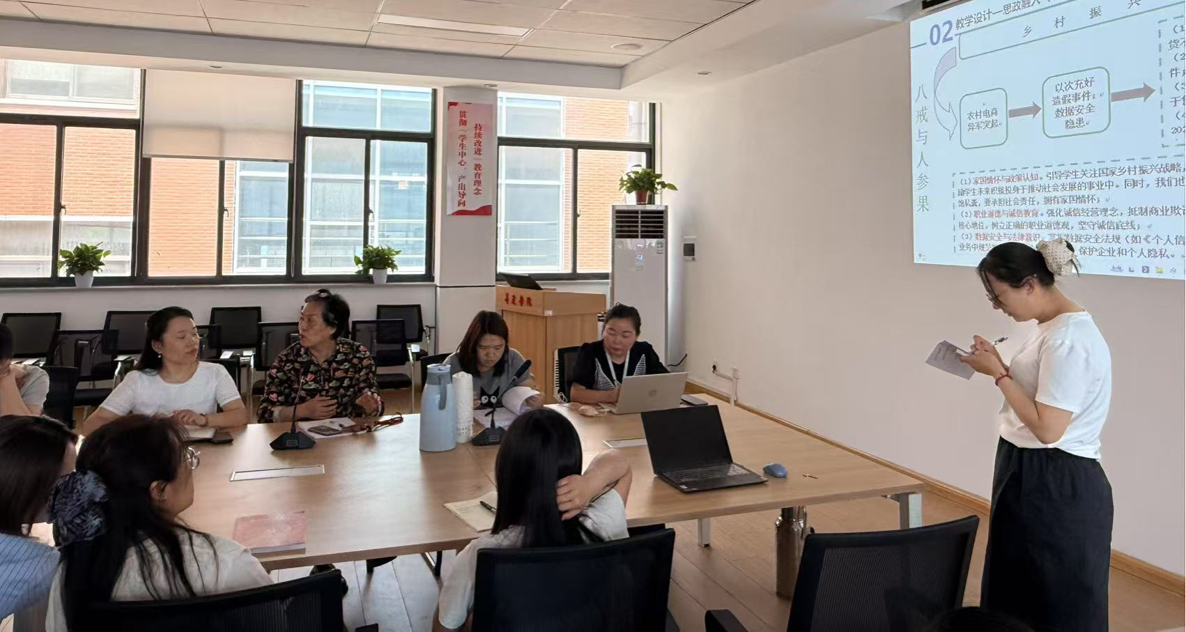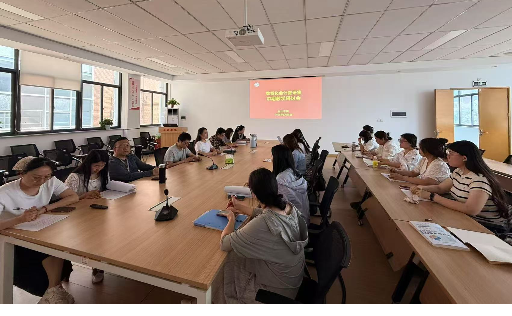 为深入贯彻落实立德树人根本任务,持续推进专业课程思政教学改革走深走实,充分发挥课程思政示范课程的引领作用,根据公司工作安排,2025年5月15日下午,数智化会计教研室在4号楼209会议室举行课程思政教学设计观摩研讨交流会。本次交流会由教研室主任田丽丽老师主持,教研室全体教师参与。