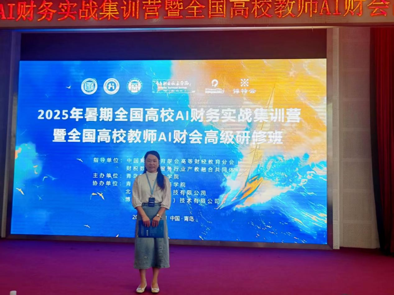 为响应教育部《中国智慧教育白皮书(2025年5月)》倡议,贯彻教育部等九部门印发的《关于加快推进教育数字化的意见》,推动365VIP英国上市官网财会专业教学改革,助力智能财会课程体系建设,2025年7月15日,公司选派数智化会计教研室主任田丽丽老师赴青岛参加“2025年暑期全国高校AI财务实战集训营暨全国高校教师Al财会高级研修班”。本次研修班以“高校AI财会人才培养”为主题,在中国高等教育学会高等财经教育分会、财税数字化服务行业产教融合共同体指导下,由青岛职业技术公司主办,青岛理工大学商公司,北京融智国创科技有限公司,博特产业(北京)技术有限公司协办,来自全国不同类型高校的150余名专家、教师参会,共同学习探讨AI财会人才培养新路径。