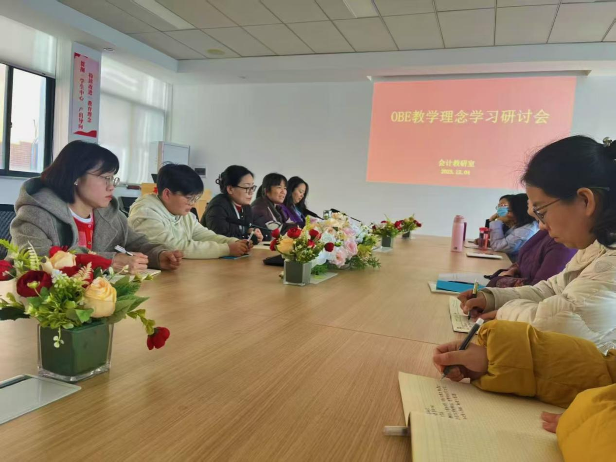 为深入贯彻落实公司公司产品改革要求,积极推动成果导向教育(OBE)理念在会计学专业教学中的融合与实践,2025年12月4日中午,会计教研室在4号楼209室召开了OBE教学理念专题学习研讨会。本次会议旨在总结2025年11月29日至30日公司举办的OBE专题培训成果,交流学习体会,进一步凝聚共识,明确教学改革方向。